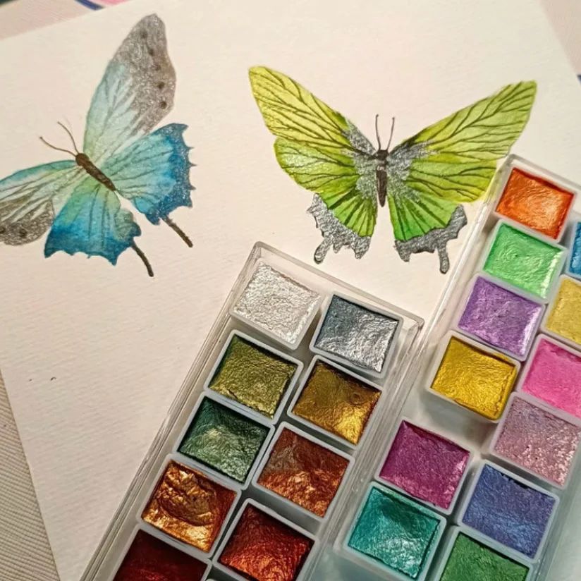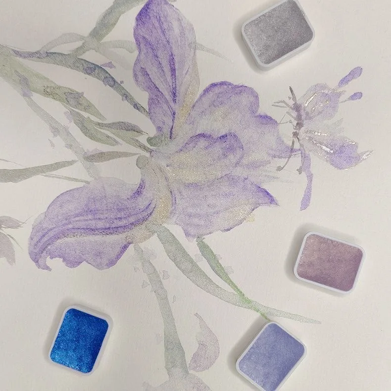 20 Colors Metal Watercolor Painting Set, Portable Box With Shiny Pearls Solid Watercolor Painting